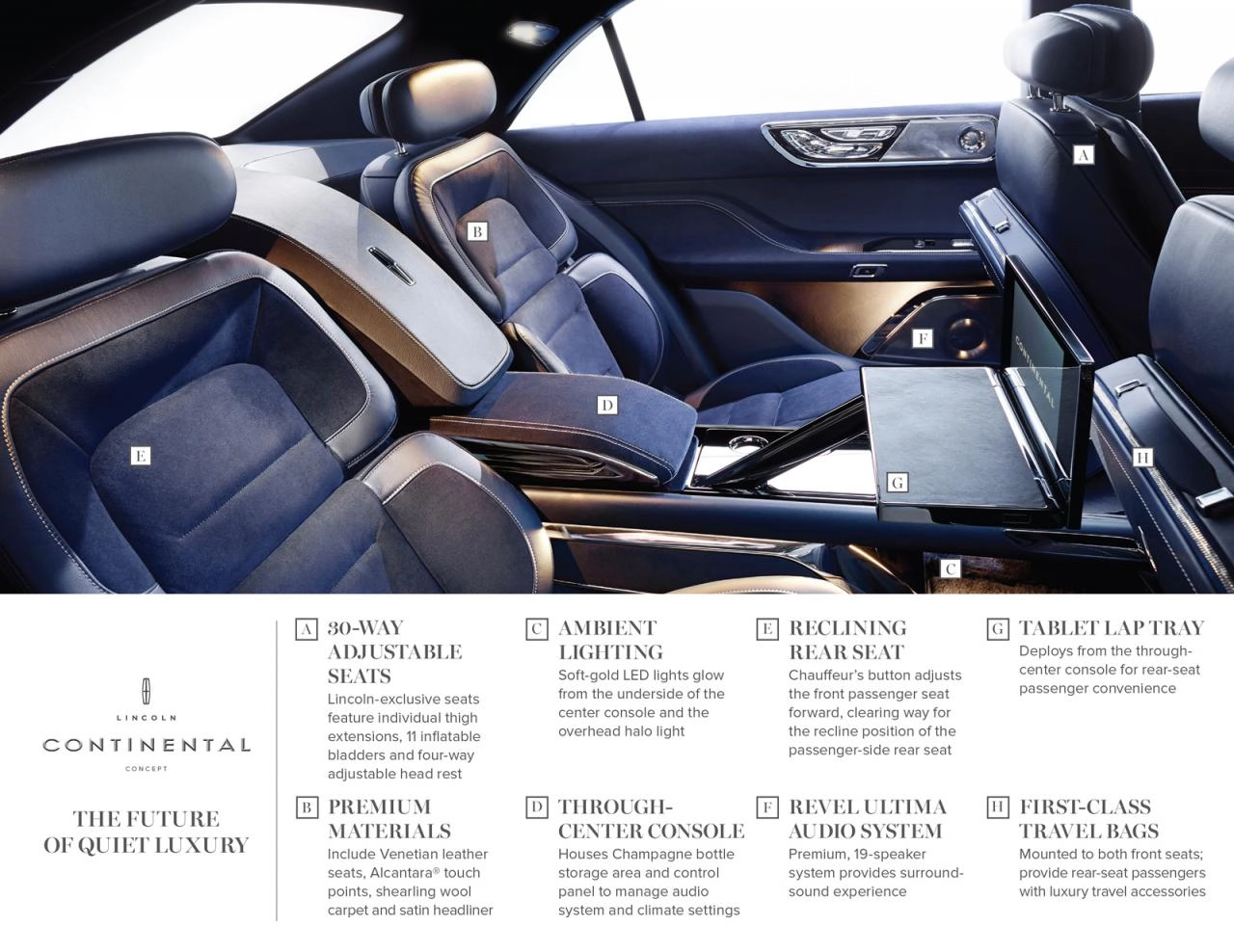 La nuova Lincoln Continental sarà presentata a New York con il concept 2015, un modello che anticipa la produzione (prevista per il 2016) della berlinona di lusso che si presenta con un design “tedesco" sotto certi punti di vista. Il frontale, elegante e tecnologico, sfoggia i nuovi proiettori a matrice di LED con abbaglianti laser mentre sulla sezione laterale spiccano i cerchi in lega da 21 pollici e le maniglie delle portiere “a scomparsa". Anche l’interno è un trionfo di lusso che, forse, nell’eccessiva quantità di cromature della sezione di strumentazione e tunnel centrale, diventa addirittura troppo.