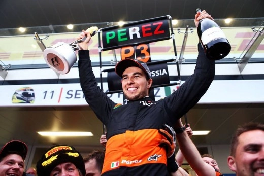 Come detto, terzo posto e grande gioia per Sergio Perez: il momento chiave della sua gara è stato il rientro ai box quando è uscita la seconda safety car, poi ha fatto un´ottima performance che gli ha consentito addirittura di salire sul podio grazie all´incidente tra Raikkonen e Bottas.