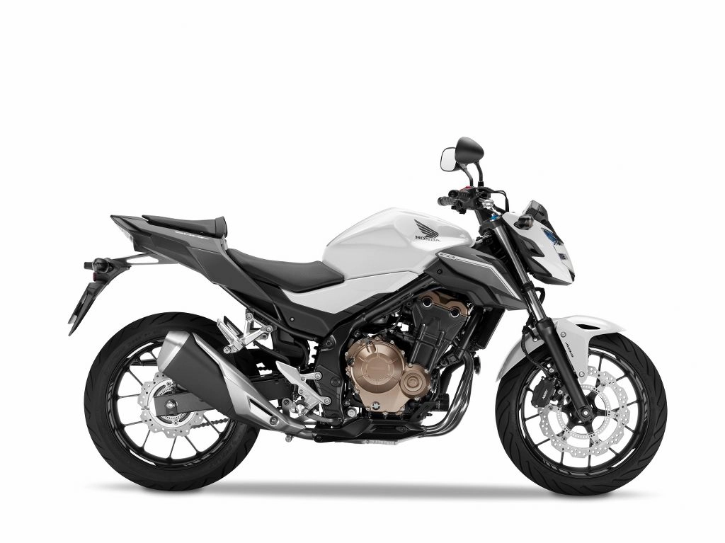 Scheda tecnica Honda CB500F Motore: bicilindrico da 471 cc Raffreddamento: a liquido potenza: 48 a 8.500 giri coppia: 43 Nm a 7.000 giri sospensione anteriore: forcella telescopica da 41 mm regolabile nel precarico sospensione posteriore: mono Pro-Link