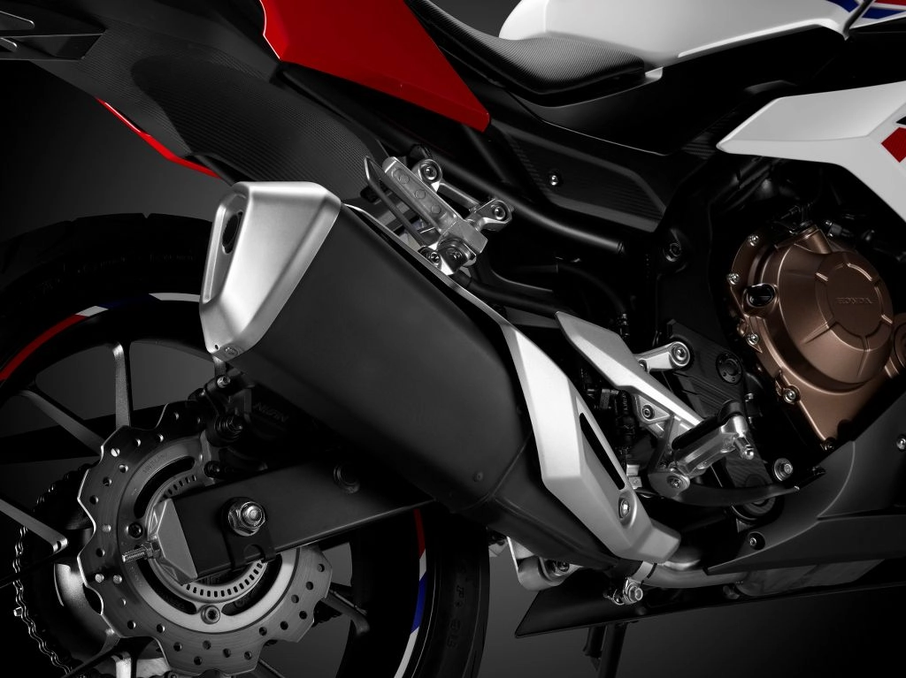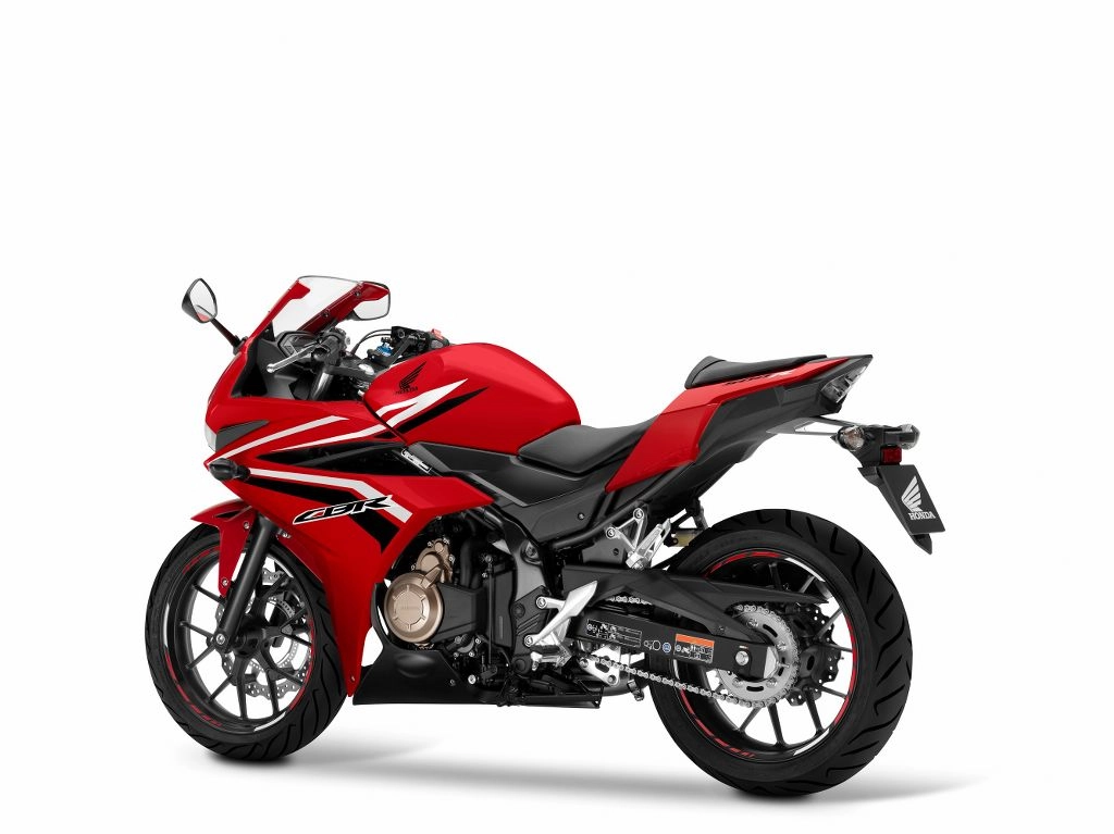 Scheda tecnica Honda CBR500R Motore: bicilindrico da 471 cc Raffreddamento: a liquido potenza: 48 a 8.500 giri coppia: 43 Nm a 7.000 giri sospensione anteriore: forcella telescopica da 41 mm regolabile nel precarico sospensione posteriore: mono