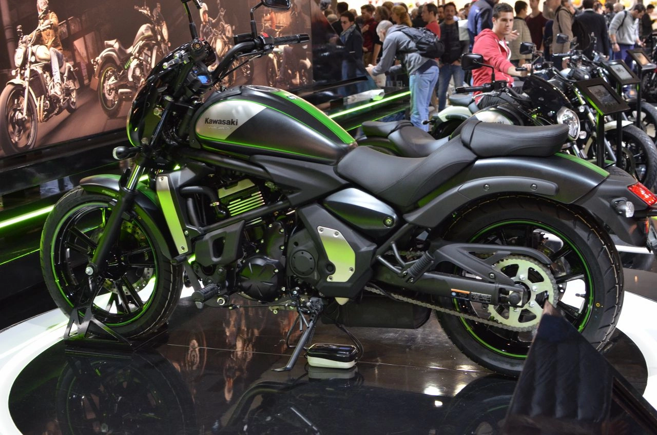 Kawasaki Vulcan S Special Edition è la MY2016 che torna ad EICMA proponendo una nuova grafica che affianca alla vernice nera opaca le strisce verdi sui cerchi e sulle fiancate del serbatoio.