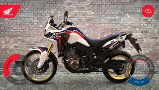 L’applicazione sfrutta la realtà aumentata e materializza una Africa Twin virtuale ovunque si voglia, semplicemente usando la videocamera dello smartphone. In questo modo potremo osservare virtualmente tutte le angolazioni (e le dimensioni) della moto e scegliere i colori (quattro disponibili) e le versioni tra standard, ABS e DCT. Ovviamente non manca la sezione dedicata alle caratteristiche e la condivisione degli scatti in realtà aumentata sui social.