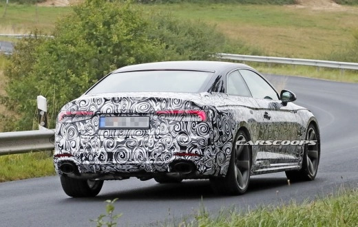 La rinnovata gamma di Audi A5 si completerà con la versione più sportiva, denominata RS5, in arrivo il prossimo anno: rispetto alla precedente cambiano pochi dettagli e il motore dovrebbe sviluppare qualche cavallo extra.