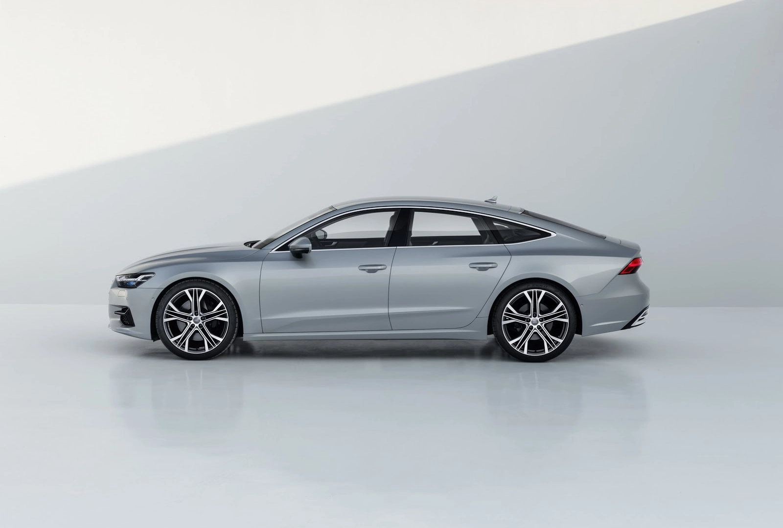 Le linee filanti della vettura si dipartono dalla nuova mascherina anteriore Singleframe, ora più larga, bassa e spigolosa che in passato, disegnando un corpo vettura sinuoso e al contempo teso, valorizzato dalle tecnologie di stampaggio a caldo della lamiera, autentico vanto del gruppo VAG. La linea a cuneo della A7 Sportback termina con un sobrio alettone posteriore a scomparsa posizionato all’estremità del portellone. Questo spoiler fuoriesce a velocità superiori a 120 km/h per aumentare la deportanza della vettura.