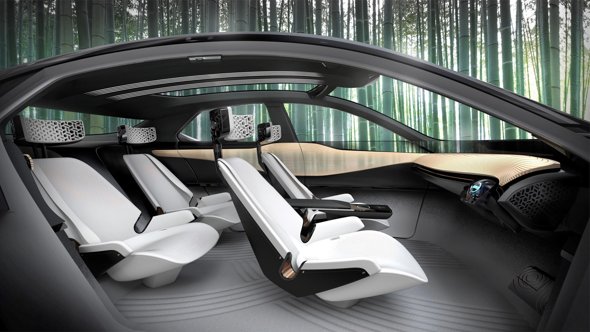 L'abitacolo cambia in funzione della guida autonoma: il display OLED della strumentazione si estende in orizzontale e abbraccia tutta la sezione anteriore e l'intelligenza artificiale consente di controllare il quadro strumenti con i movimenti degli occhi e i gesti, riducendo al minimo i pulsanti. Lo schermo si estende anche sulla sezione laterale, mostra l'ambiente esterno simulando quindi la trasparenza e rimpiazza gli specchietti retrovisori con le immagini delle videocamere.