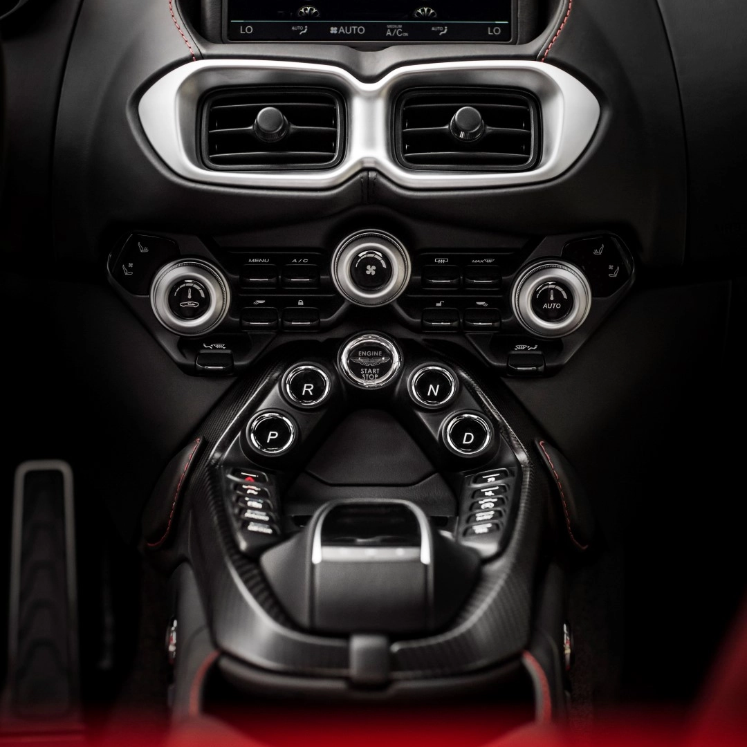 Dentro, Vantage è più spaziosa, elegante e sempre ben rifinita. Adesso, poi, è diventata più tecnologica e funzionale per la vita di tutti i giorni: la plancia abbandona le linee un po'datate che vedevano uno sviluppo verticale della console centrale, accogliendo una forma a sviluppo orizzontale impreziosita da nuove bocchette dell'aria, un inedito tunnel centrale e una migliore disposizione dei comandi principali, tra cui i tasti della trasmissione automatica. Grande attenzione è stata data ai materiali, con pelle, Alcantara e Fibra di carbonio a profusione.