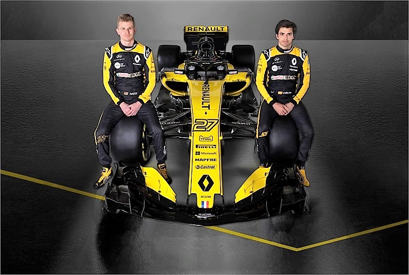 Renault Sport Formula One Team ha svelato la sua monoposto 2018, che affiderà a Nico Hülkenberg e Carlos Sainz. Il terzo pilota e pilota di riserva è Jack Aitken. A loro si aggiunge Artem Markelov, responsabile dei collaudi e dello sviluppo.