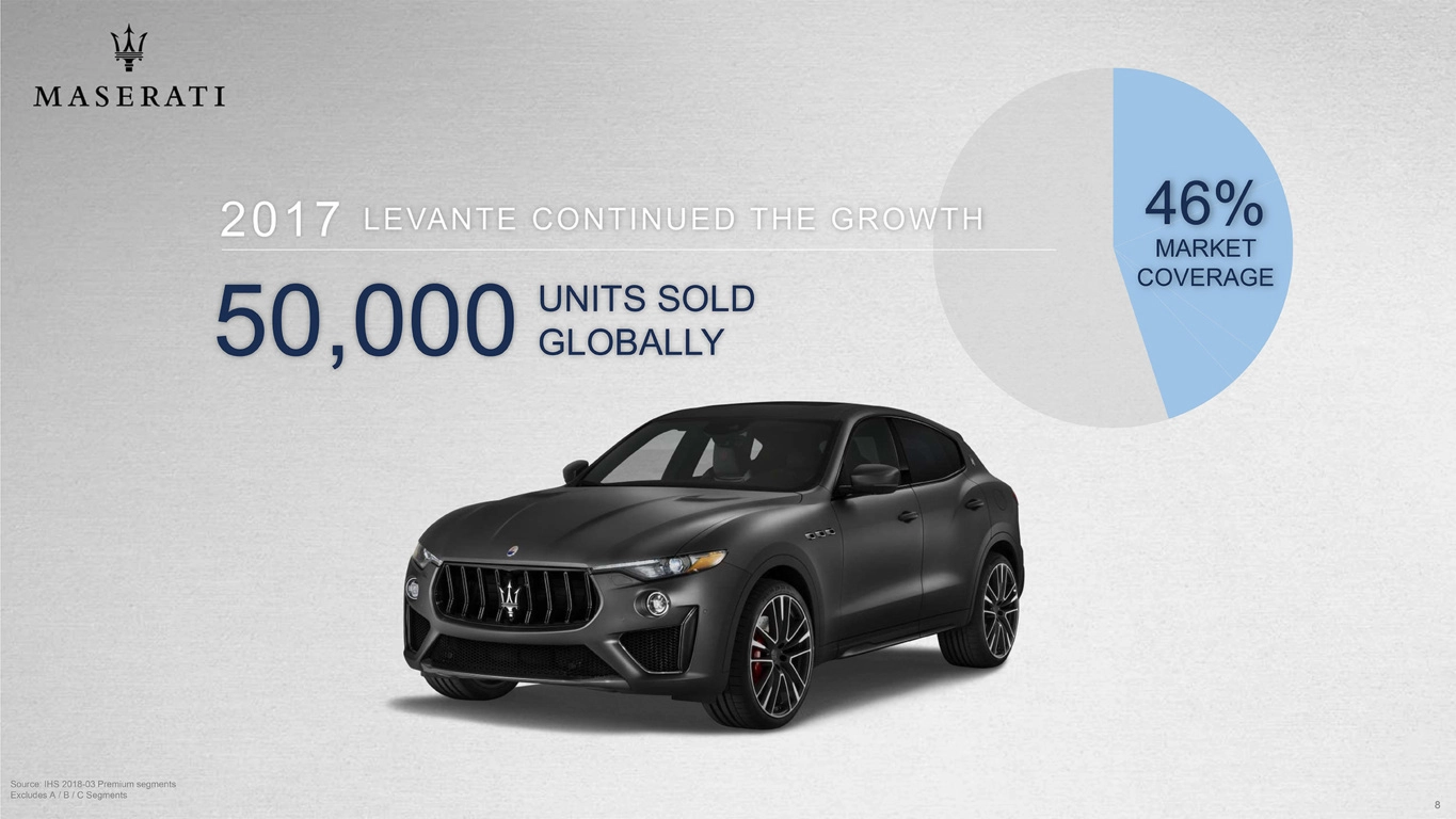 Maserati conta di poter vendere, nel 2022, 100.000 veicoli all'anno, raddoppiando in pratica i valori attuali pur mantenendo alto il margine di guadagno (15%).