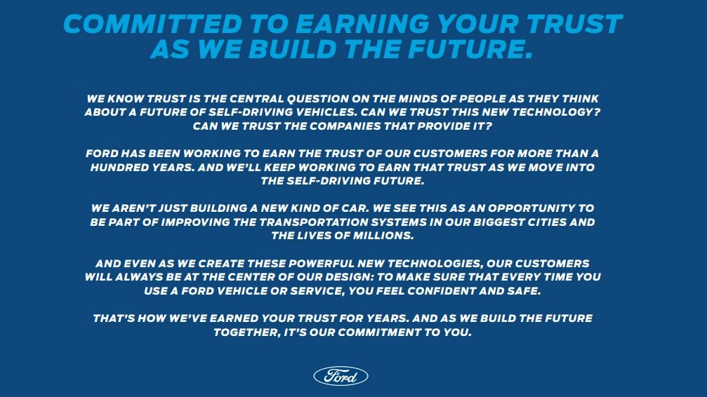 Ford, la fiducia dei consumatori alla base della guida autonoma