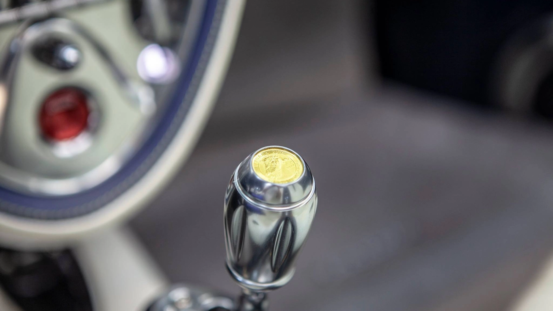 Una chicca è rappresentata dal pomello del cambio, disegnato ad hoc per alloggiare una speciale moneta d'oro raffigurante il Girfalco. Un esempio di personalizzazione "sartoriale" tipica del Made in Italy che oltreoceano, scontato dirlo, raccoglie numerosissimi estimatori.