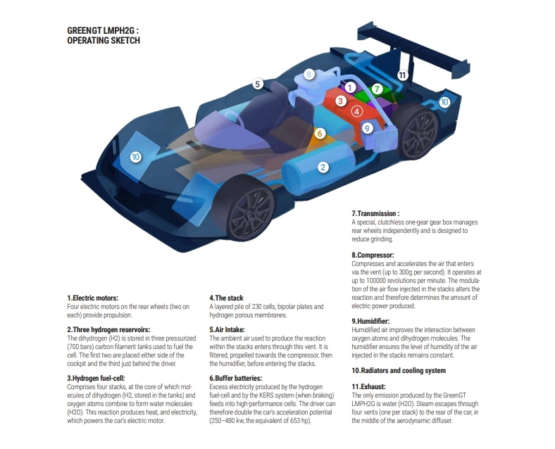 Guidata da Yannick Dalmas, quattro volte vincitore della 24 Ore di Le Mans, la LMPH2G ha percorso un giro completo della pista belga (7 km) effettuando anche il pit stop. "L'idrogeno è il futuro perché puntiamo alla mobilità a emissioni zero. Il nostro ruolo è sviluppare tecnologie ad alte prestazioni e rispettose per l'ambiente", ha dichiarato Pierre Fillon, Presidente ACO. La prossima tappa della Mission H24 è in programma il 5 ottobre al Salone di Parigi.