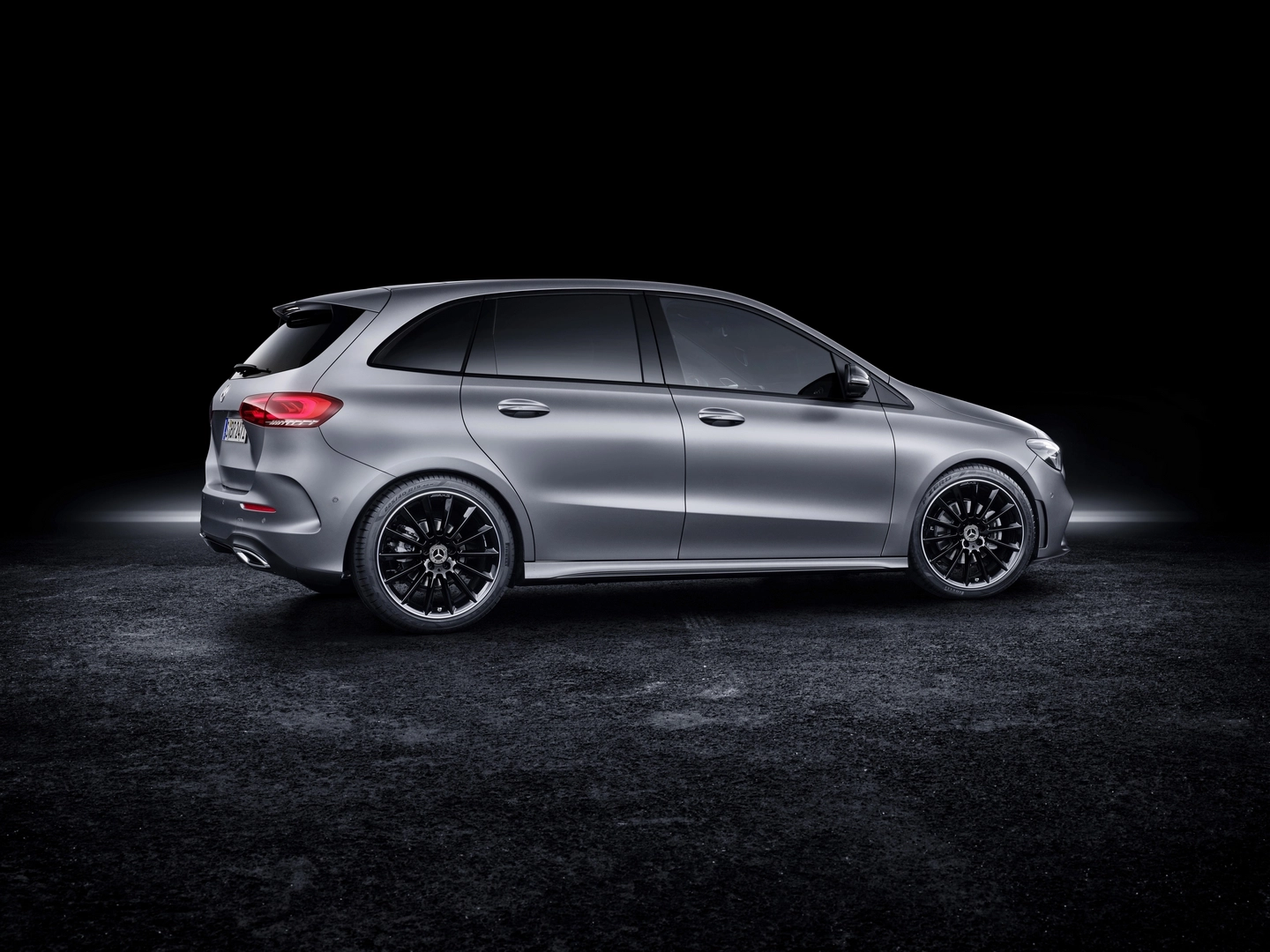 La nuova Classe B dispone all'anteriore dei gruppi ottici a LED, mentre su richiesta potranno essere montati anche quelli full-LED e i Multibeam LED, con luci di marcia a regolazione elettronica si adattano rapidamente alle condizioni del traffico. La vettura possiede un aspetto più dinamico grazie alla linea del tetto leggermente ribassata e ai cerchi da 16 fino a 19 pollici. Nel posteriore emergono i gruppi ottici LED sdoppiati, mini estrattore color nero e spoiler sul tetto. Tutti elementi che mantengono il Cx entro un valore di 0,24 (sul modello precedente era di 0,25).