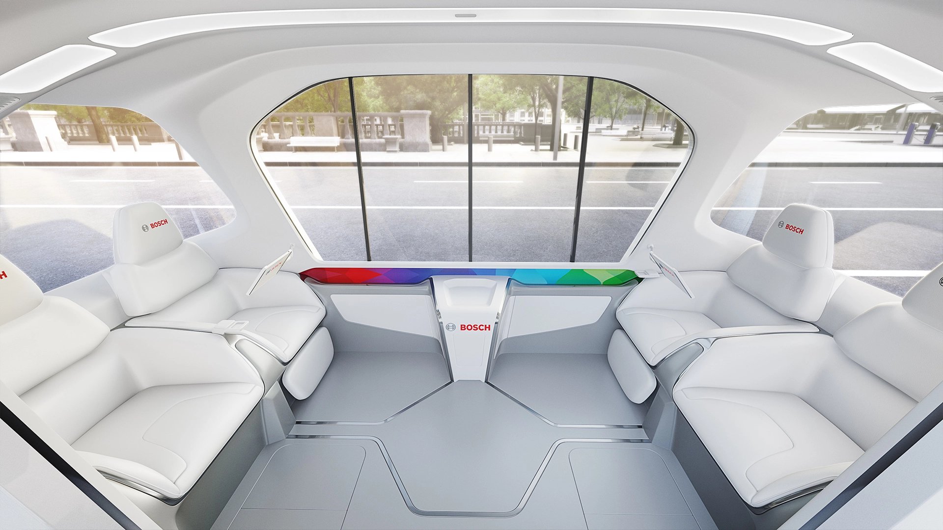 Un veicolo a guida autonoma, semplice nelle forme e generoso negli spazi e nei servizi a disposizione degli occupanti: è questa l'idea alla base del concept firmato Bosch. Nata principalmente per rispondere alle future richieste di servizi di ride sharing senza conducente, questa navetta può essere prenotata facilmente. Un algoritmo identifica il veicolo più vicino alla posizione richiesta e trova altri utenti che desiderano percorrere un percorso simile. Trattandosi di un veicolo per il ride sharing, più passeggeri ci sono, più economico (ed ecologico) è il viaggio per tutti.