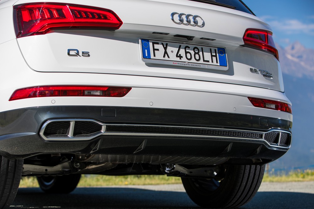 In questa versione (Audi Q5 55 TFSI e) il motore a benzina è il 2.0 TFSI 4 cilindri turbo a iniezione diretta con 252 CV e 370 Nm, ed è abbinato ad un motore elettrico, integrato nell’alloggiamento della trasmissione, che vanta una potenza di picco di 143 CV e una coppia massima di 350 Nm. I due propulsori, abbinati al cambio S tronic con una terza frizione di separazione, generano una potenza complessiva di ben 367 CV (cioè 270 kw) e una coppia di 500 Nm, subito disponibili a partire da 1.250 giri fino ai 5000.