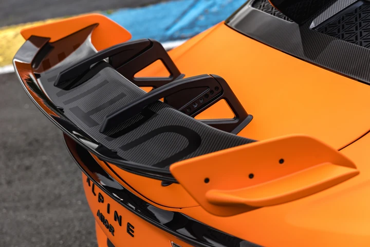 L’attenzione all’aerodinamica è uno degli elementi chiave del progetto. L’Alpine A110 R Ultime, infatti, genera un carico totale di 100 kg alla velocità di 275 km/h, ben 149 in più rispetto alla versione R. La distribuzione del carico tra anteriore e posteriore è stata ottimizzata per garantire una stabilità eccezionale anche nei passaggi più veloci, grazie all’adozione di nuove alette, uno spoiler posteriore più efficiente e un alettone regolabile in quattro diverse inclinazioni.