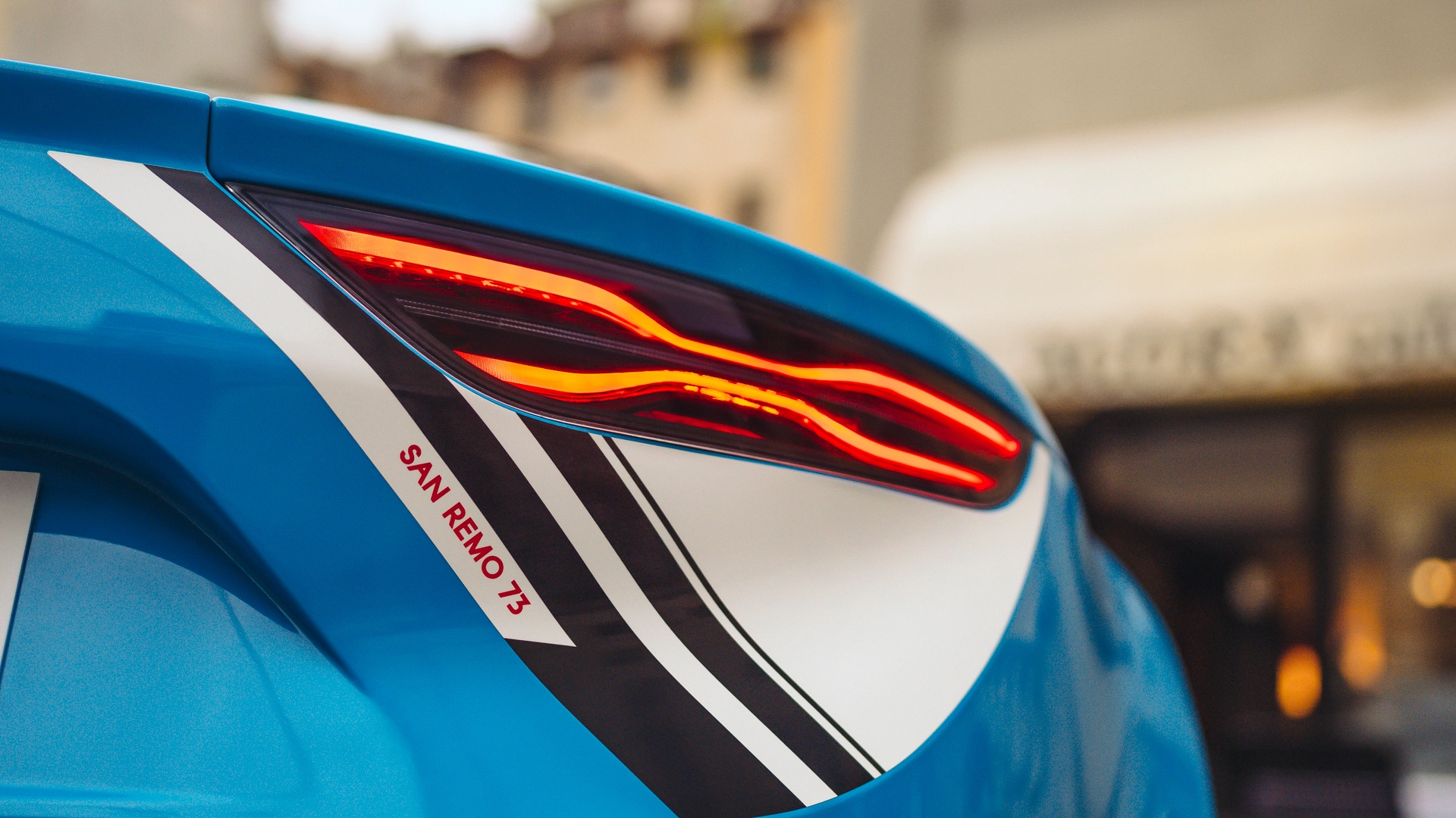 La nuova serie limitata A110 San Remo 73 rende quindi omaggio al passato nei rally di Alpine e si caratterizza per una speciale livrea ispirata all'auto da corsa del 1973. Nello specifico, la firma “San Remo 73” apposta su cofano, porte e paraurti posteriore è completata da elementi in bianco e nero sulle porte. Inoltre, troviamo cerchi da 18 pollici Grand Prix Bianco brillante, le pinze Brembo color antracite, le maschere dei proiettori anteriori nere nonché i loghi dei parafanghi e i monogrammi Alpine nero lucido.