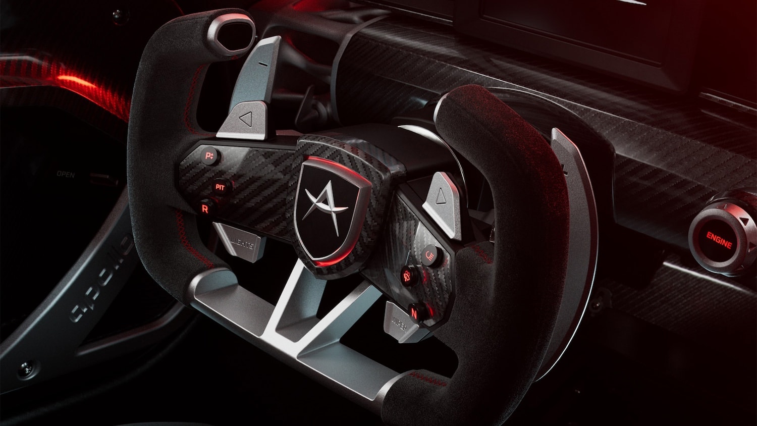 L’interno segue la stessa filosofia senza compromessi. Niente rivestimenti superflui. La struttura è a vista, realizzata quasi interamente in carbonio e alluminio, con ogni elemento che ha una funzione precisa. I comandi essenziali sono disposti orizzontalmente, quelli secondari in verticale e orientati verso il pilota, creando un ambiente che sembra più una macchina da corsa che un’auto “tradizionale”.