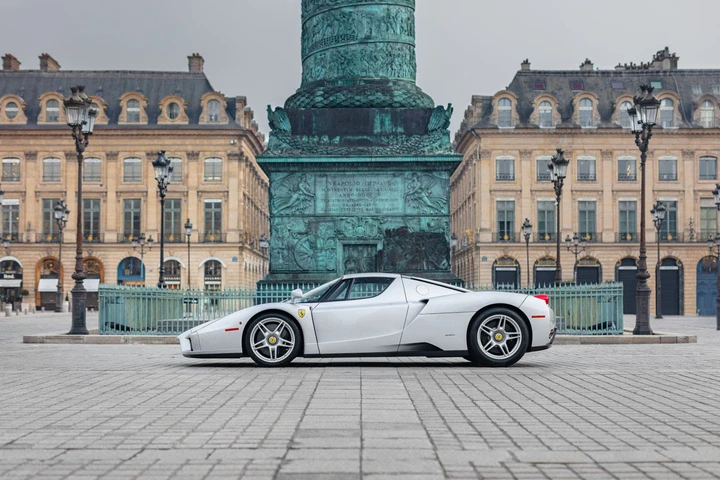 La Ferrari Enzo all’asta è una dei soli 9 esemplari prodotti in Argento Nürburgring, una tonalità di colore che rende omaggio al celebre circuito tedesco, ma è resa ancora più speciale dal fatto di essere una delle sole cinque con interni in pelle Rosso Cartier. Con un valore di stima prossimo a 5 milioni di euro è stata prodotta nel 2004 e consegnata nel Regno Unito tramite Maranello Concessionaires Ltd; ad oggi ha percorso poco più di 19.000 km.