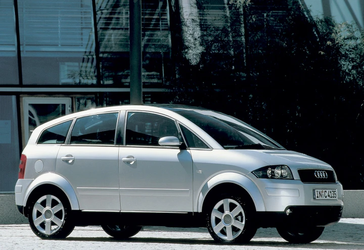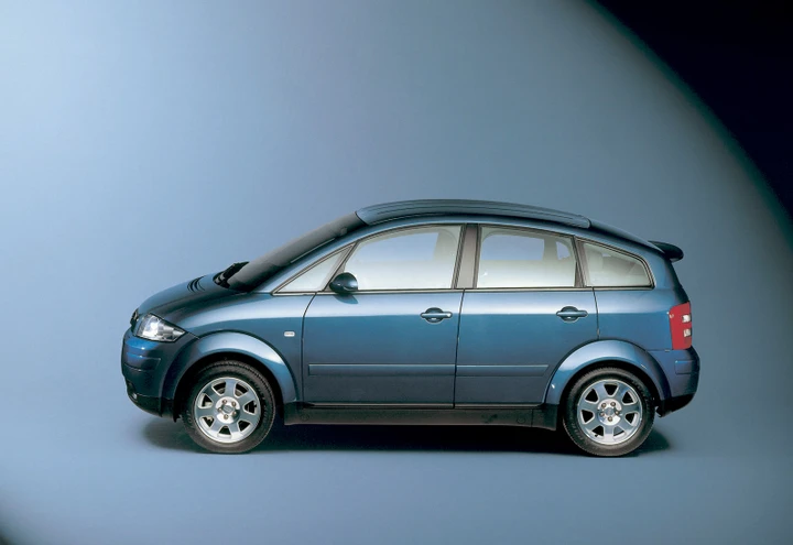 L’originale Audi A2 è considerato un modello iconico, ma molto polarizzante: c’è chi la ama e chi la odia. Lunga 3,82 metri, arrivò sul mercato nel 1999 per contrastare la Mercedes Classe A, distinguendosi per le finiture di alto livello, l’aerodinamica curata e la tecnica raffinata. La A2 era basata su un telaio in alluminio Audi Space Frame, simile a quello dell’Audi A8 dell’epoca ma ridimensionato, che pesava appena 75,1 kg: un vero unicum nel segmento B, che non è più stato riproposto. La massa ridotta e le forme studiate per ridurre il Cx portarono a una elevata efficienza della vettura, che nelle versioni 1.2 TDI 3L toccò l’apice grazie al consumo di appena 3 litri per 100 chilometri (cioè oltre 33 km con un litro di gasolio).
