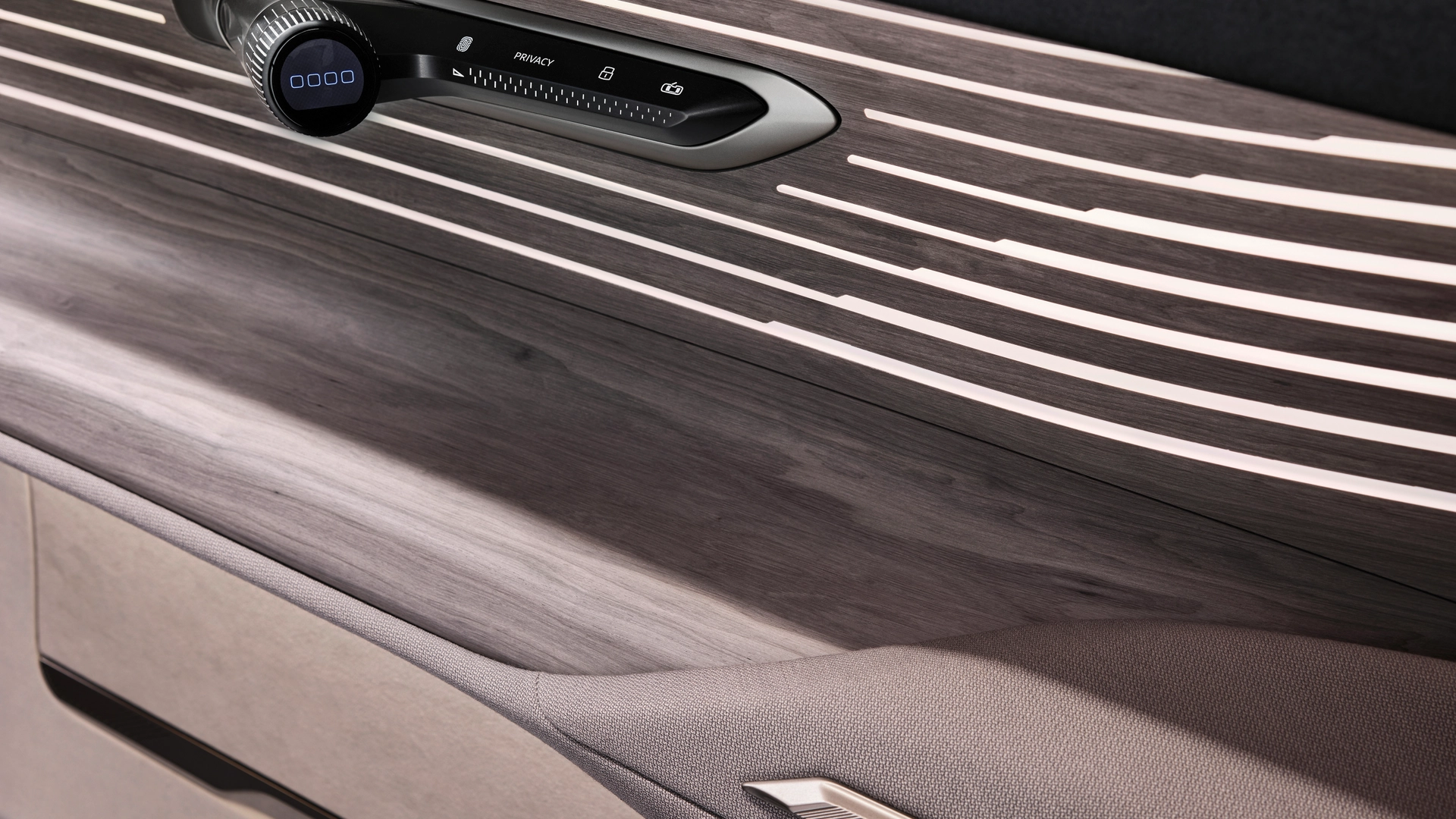 Nell'abitacolo non sono visibili né gli indicatori della strumentazione né i classici display touch a favore della pulizia delle superfici in radica, lana, fibre naturali e sintetiche. Non appena si avvia l'auto, le informazioni vengono visualizzate sotto forma di proiezioni lungo i rivestimenti lignei della plancia e alla base del parabrezza.