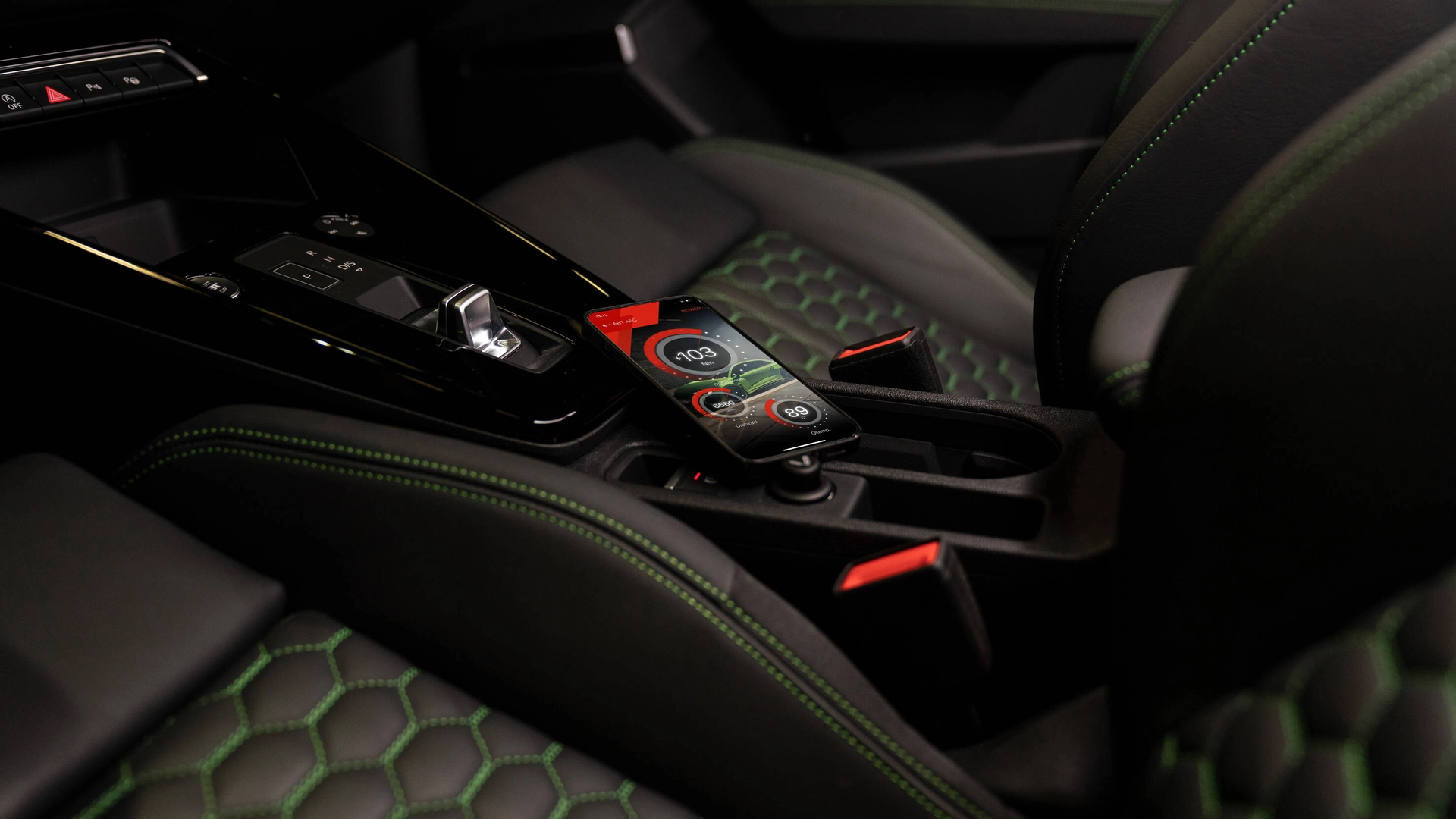 Una caratteristica particolarmente innovativa della RS3-R è la possibilità di aumentare la velocità massima, che di serie è limitata elettronicamente, a 300 km/h. Si può impostare il valore attraverso la nuova app myABT per dispositivi Apple e Android. Questa opzione può essere attivata gratuitamente.
