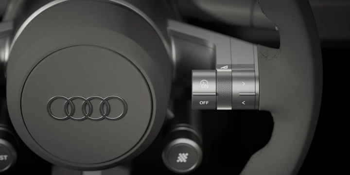 La scelta di puntare sulla semplicità e sull’essenziale emerge anche all’interno dell’abitacolo. Stile minimalista ma comunque sempre elegante. Troviamo un volante a 4 razze dalla forma circolare dotato di comandi fisici realizzati in alluminio. Dietro, spicca il quadro strumenti digitale. C’è anche un sistema infotainment con display da 10,4 pollici collocato centralmente che, però, può scomparire premendo un semplice pulsante, per rendere le linee della plancia ancora più pulite ed essenziali. Troveremo questa soluzione anche sulle Audi del futuro?