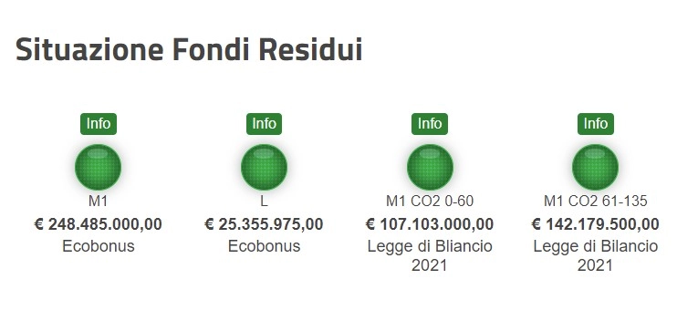 I fondi degli incentivi per le auto tra 61 e 135 g/km di CO2 stanno calando rapidamente; potrebbero esaurirsi nel primo trimestre del 2021.