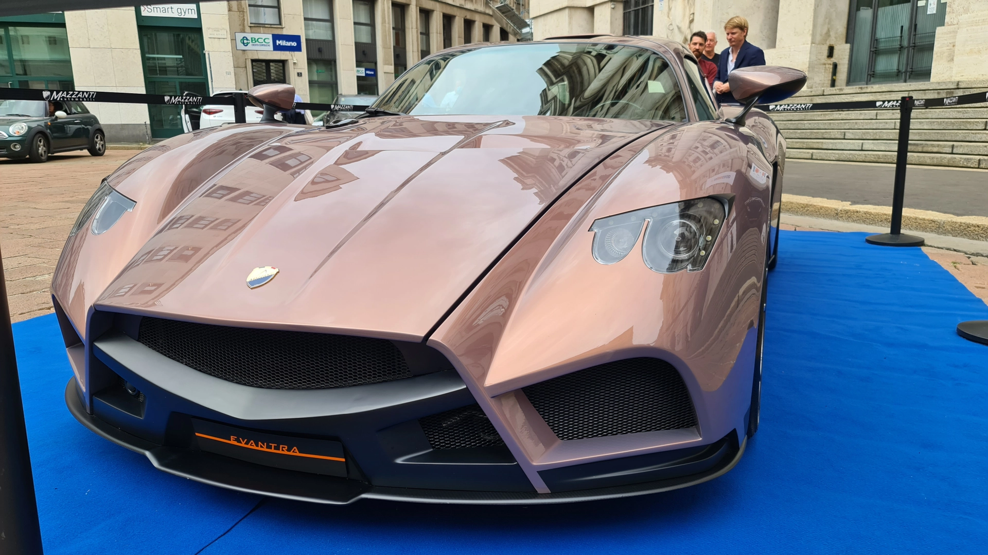 La Mazzanti Evantra nella nuova colorazione Bronze si è lasciata fotografare in Piazza Affari in occasione dell'evento “CrowdFundMe Day”, organizzato dalla piattaforma “CrowdFundMe”. Avendo aderito e portato a termine una campagna crowdfunding di successo, Mazzanti Automobili ha deciso di mostrare al pubblico, per la prima volta, la sua Evantra Bronze. L’hypercar italiana rimane fedele alla sua meccanica ma mostra ora una nuova colorazione che prende spunto dai tramonti toscani, mischiando insieme sfumature di colore prese dal sorgere del sole all’orizzonte e dalle cromie delle colline toscane. L'inedito colore bronzeo è stato ottenuto mixando un triplo strato di tinte diverse, dall'arancione al viola.