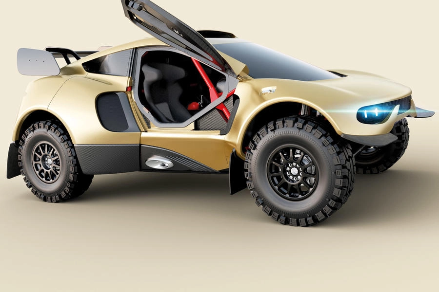 BRX Hunter T1+, come la sua gemella da corsa, utilizza una carrozzeria progettata dall'ex capo del design Jaguar Ian Callum, con lo stesso telaio tubolare in acciaio.
