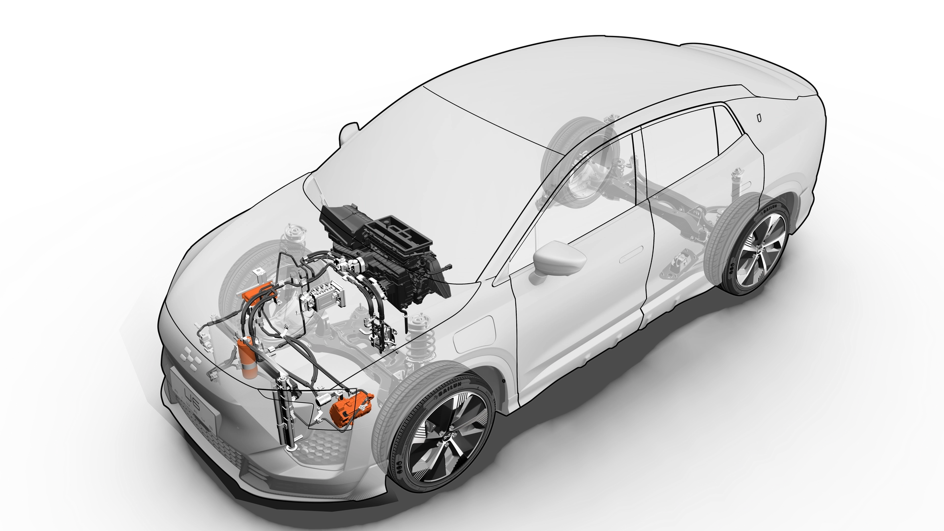 Per l'AI-PT, questo aspetto è gestito da un nuovo scambiatore di calore che non solo raffredda il motore, ma ne sfrutta in modo ottimale il calore residuo. L'energia termica rilasciata dal motore non rimane inutilizzata e non viene dispersa nell'ambiente, ma viene impiegata per riscaldare l'abitacolo o raffreddare il pacco batterie. Questa soluzione aumenta la durata della batteria e la rende meno vincolata alla temperatura esterna.