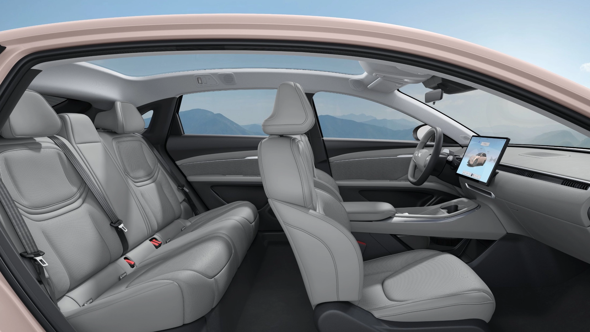 All'interno l'impostazione dell'abitacolo è minimalista, come spesso avviene per le vetture elettriche. Al centro della plancia c'è un enorme schermo centrale da ben 15,6 pollici dal quale si comanda tutto e che concentra pure le informazioni che di norma si trovano nel quadro strumenti, davanti il conducente. A gestire le operazioni c'è un processore di Qualcomm, lo Snapdragon 8155, e l'input avviene anche attraverso i comandi vocali con una serie di microfoni posti un po' ovunque, affinché il sistema possa cogliere gli ordini di tutti gli occupanti.