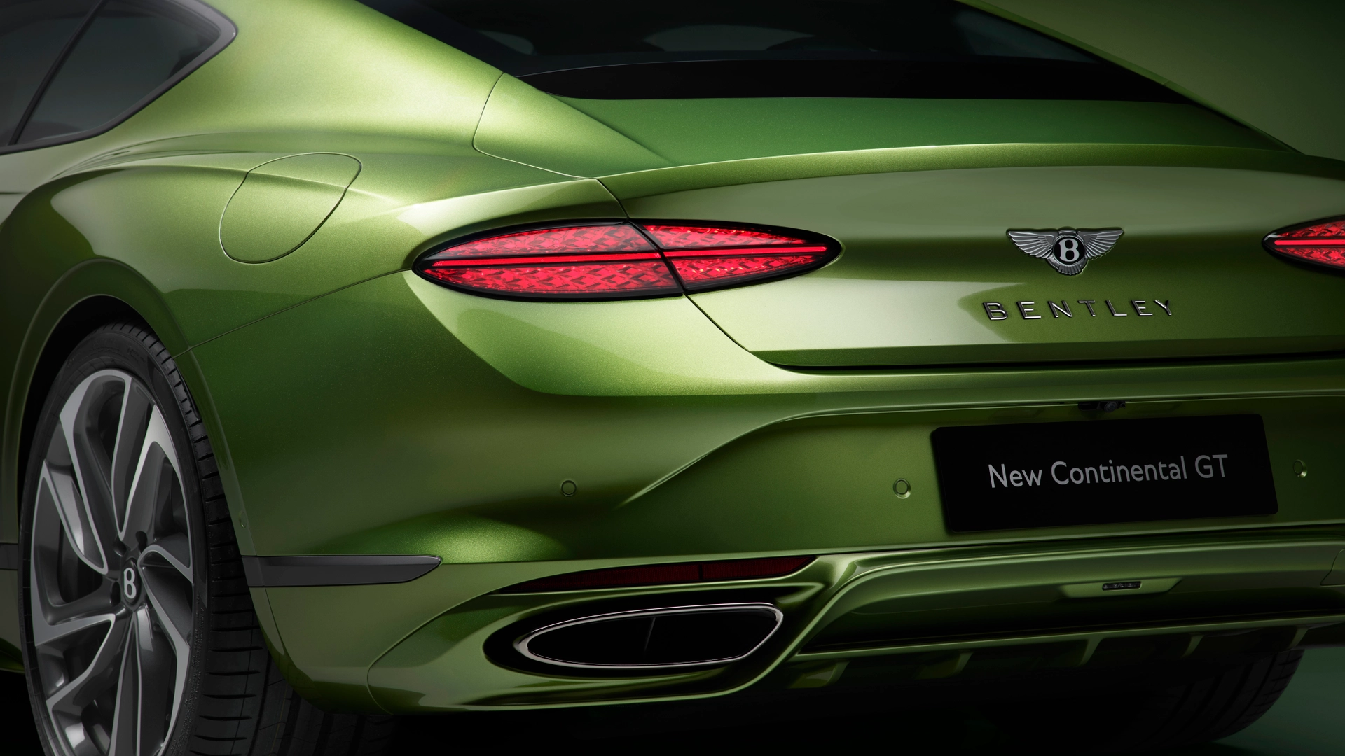 Lunga 4,89 m, la nuova Bentley Continental GT mantiene le proporzioni del precedente modello e si caratterizza per i nuovi gruppi ottici con tecnologia Matrix LED e una calandra ispirata a quella dei più recenti modelli Bentley. Anche il posteriore è stato ridisegnato. Troviamo nuovi paraurti, fari rivisti e nuove forme per il cofano del bagagliaio. Il nuovo modello si può avere con cerchi da 22 pollici.