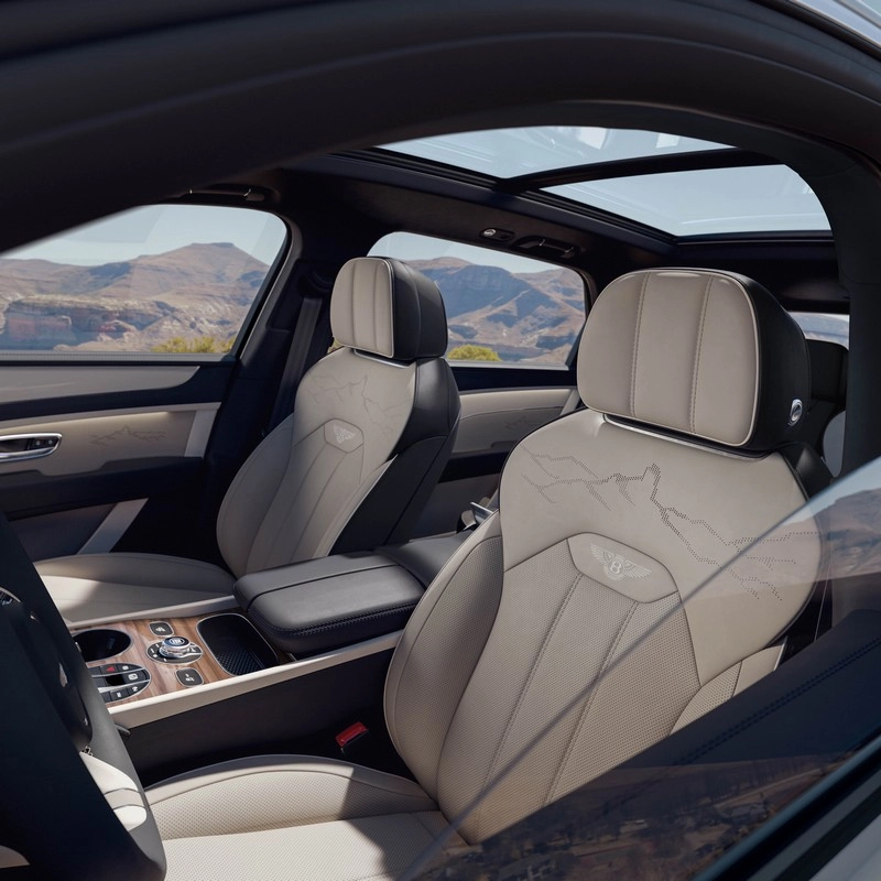 Per quanto riguarda il design degli esterni, la Artenara Edition si distingue per la calandra anteriore con il motivo “double diamond” e i cerchi da 22 pollici con finitura in grigio lucido di serie, mentre in opzione sono disponibili anche i cerchi da 23 pollici Super Lux Wheel. Per chi desidera un’estetica più sportiva, è disponibile il pacchetto Blackline, che sostituisce le cromature con dettagli bruniti. Il centro stile di Bentley ha anche sviluppato otto combinazioni cromatiche esclusive, tra cui il nero Beluga, il blu Sequin Blue e il verde Verdant.