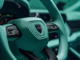 La scelta della tinta Mint che ricopre ogni componente esterno racconta già molto dell’approccio del progetto. La carrozzeria adotta una visione monocromatica che coinvolge la fibra di carbonio, le superfici aerodinamiche e i cerchi forgiati da 24”. Nulla è lasciato al classico gioco di contrasti.