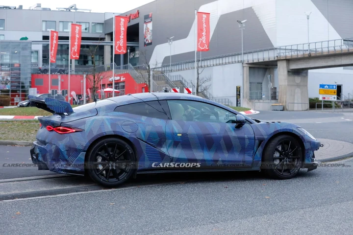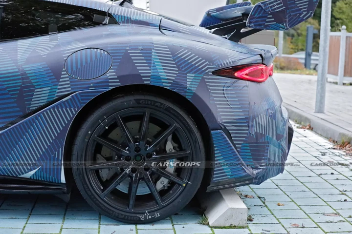 Le foto spia mostrano la sportiva elettrica ancora camuffata. Tuttavia, le sue forme sono evidenti e da quello che possiamo osservare, la Denza Z sembrerebbe essere del tutto uguale al concept presentato alcuni mesi fa. Dal punto di vista estetico, il frontale presenta due ampie prese d’aria, una piccola griglia e fari a LED. Presente anche un ampio splitter anteriore, oltre ad una coppia di piccoli flap sotto il paraurti. Al posteriore, invece, sono presenti una grande ala fissa, un ampio diffusore e luci a LED. Le immagini permettono anche di osservare la presenza di pneumatici semi-slick GitiSport GTR3, con misure 325/30 al posteriore e 275/35 all’anteriore.