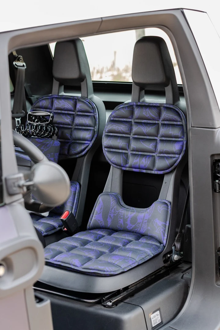 Almeno così lo descrive Citroen. La base di questo concept è quella della Citroen Ami Buggy con una serie di personalizzazione esclusive. Abbiamo innanzitutto una carrozzeria di colore viola con tettuccio apribile bianco e spoiler nero. Sul tetto è presente anche una barra a LED aggiuntiva per migliorare la visibilità. Non mancano poi dettagli di colore bianco. Derivando della Buggy troviamo penumatici tassellati e al posto delle classiche portiere delle protezioni tubolari. Tra gli accessori pensati espressamente per il mondo del surf, tappetini realizzati con mute da surf riciclate, resistenti all’acqua e facili da pulire, una doccia portatile, un contenitore portaoggetti impermeabile lato passeggero oltre a supporti laterali e sul tetto per tavole da surf. Non mancano poi specifici accessori come una tavola da surf con motivi coordinati ai sedili, marchiata Citroen x Rip Curl, altoparlante Bluetooth viola che richiama il colore della carrozzeria ed altro.