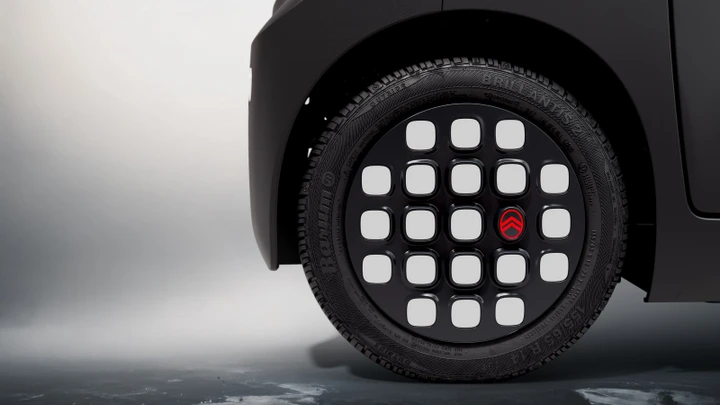 La Citroen Ami sin dal suo debutto si è sempre prestata a particolare personalizzazioni. Nel tempo abbiamo anche visto diverse versioni speciali basate su questo quadriciclo elettrico. Citroen Ami Dark Side si caratterizza quindi per una carrozzeria in un nero opaco chiamato Black Night. A contrasto, troviamo dettagli grafici bianchi come adesivi e i copricerchi. Infatti, questa special edition Dark Side utilizza i copricerchi dell’Icy Color Pack, che propongono un design con una scacchiera di cubi bianchi. Questo particolare tema grafico prosegue con un adesivo nero e bianco posizionato sul pannello posteriore, caratterizzato da motivi a cubo con angoli arrotondati. Questo design si ritrova anche nelle grafiche dedicate nella parte inferiore delle porte.