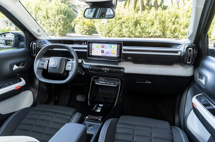 Salendo a bordo della Citroen C3 Aircross troviamo la medesima struttura dell’abitacolo della Citroen C3. Dunque, c’è un ambiente minimalista e per la versione base “YOU" niente infotainment. Al suo posto, troviamo la Smartphone Station, che include un supporto per smartphone integrato. Sugli allestimento superiori c’è invece un infotainment da 10,1 pollici. Non è presente una vera e propria strumentazione digitale perché la casa automobilistica francese ha scelto di mostrare le informazioni essenziali di marcia all’interno di una sottile palpebra collocata in posizione rialzata che definisce come una sorta di head-up display. Come già detto in precedenza, per il SUV si può richiedere l’opzione a 7 posti.