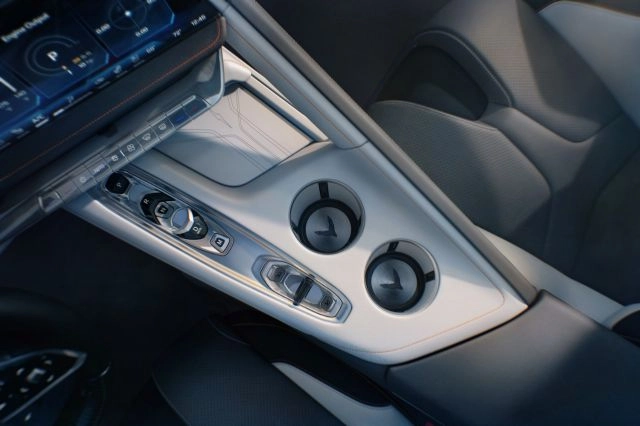 L’attenzione al passeggero cresce grazie alla presenza di una maniglia integrata e di una porta USB-C posizionata sotto di essa. I dettagli non mancano: i portabicchieri, ridisegnati con inserti rivestiti a mano e illuminazione ambientale, sfoggiano sul fondo le iconiche bandiere Corvette. Nelle versioni 2LT/2LZ e 3LT/3LZ sono impreziositi da inserti in vero alluminio. Sulla ZR1 (di serie) e a richiesta su E-Ray e Z06, arriva un cofano in fibra di carbonio sopra il display del conducente.