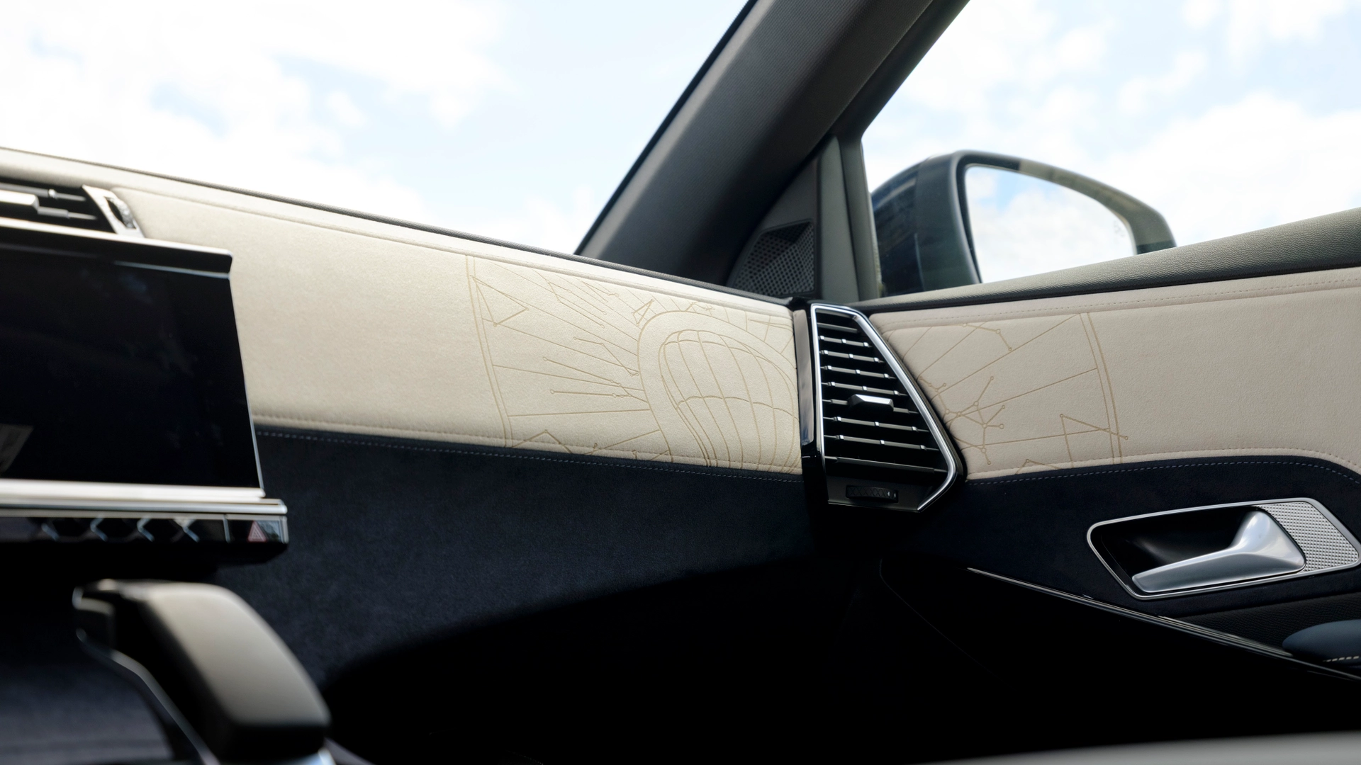 Negli interni l’abitacolo offre materiali di pregio (come l’Alcantara Blu Eterno e la pelle Nappa con concia vegetale) e incisioni Light Gold Beige per restituire una maggiore sensazione di raffinatezza ed esclusività. I pannelli delle porte sono rivestiti in Alcantara Blu Eterno con decorazioni che richiamano i motivi celesti (incisi al laser), mentre la plancia e le portiere sono abbracciate da un rivestimento in alluminio marmozizzato ispirato alle macchine inventate da Verne. I sedili anteriori sono elettrici e massaggianti con DS NECK WARMER e la presenza del logo DS retroilluminato traslucido. C’è anche uno spettacolare tetto panoramico oscurato in vetro laminato, che oltre a migliorare l’isolamento termoacustico dell’interno dell’auto, lascia filtrare la luce naturale in maniera soffusa.