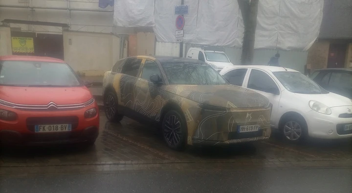 La nuova DS N°7 poggerà sulla piattaforma STLA Medium e rispetto al modello attuale crescerà di dimensioni per arrivare verso i 4,7 metri di lunghezza. Da quanto si può vedere, il nuovo SUV francese presenterà forme massicce e si caratterizzerà per un fontale dove saranno presenti fari allungati dalle forme molto sottili che alla fine potrebbero essere uniti tra di loro da una sottile striscia a LED. Passo lungo e sbalzi corti sia all’anteriore e sia al posteriore. Al posteriore si intravede una parte dei nuovi gruppi ottici che potrebbero avere una forma simile a quella della DS N°8, dunque a forma di L, forse uniti tra loro da una barra luminosa. Di profilo possiamo notare che le portiere anteriori presentano maniglie a scomparsa, scelta stilistica che permette di migliorare l’efficienza aerodinamica. Le maniglie posteriori, invece, sono integrate nel montante.