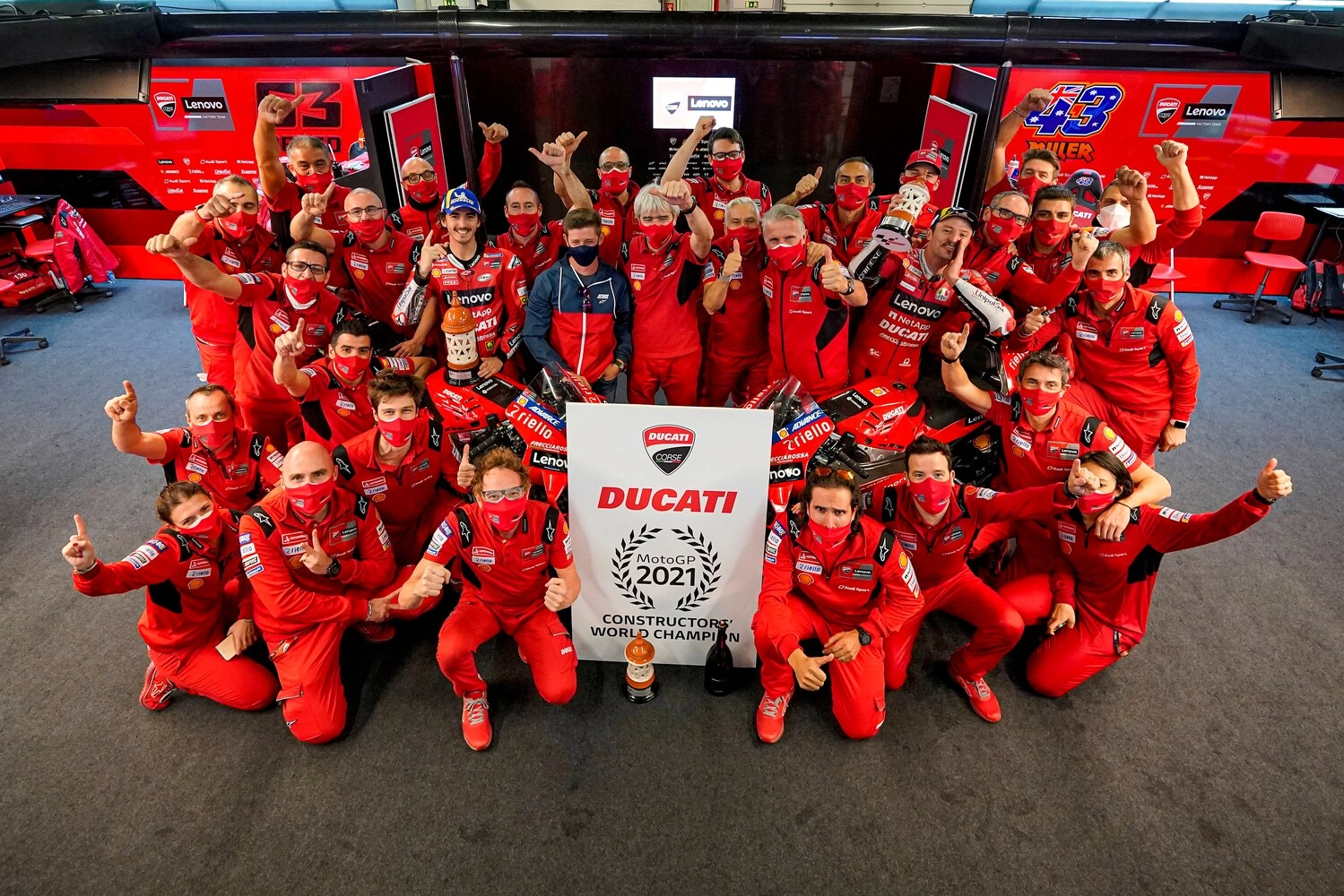 Dopo questa gara, resta ancora da disputare il Gran Premio della Comunità Valenciana sul Circuito Ricardo Tormo di Valencia, in programma tra meno di sette giorni dal 12 al 14 novembre. In quell’occasione, il Ducati Lenovo Team cercherà di assicurarsi il titolo mondiale squadre visto che al momento conduce la classifica team con 28 punti di vantaggio sul secondo classificato.