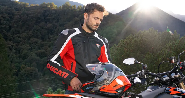 Per chi guida moto sportive, Ducati offre i caschi Logo Ducati Corse V8 Ducati. Il primo è chiaramente indirizzato all’utilizzo in pista, con un’aggressiva livrea racing firmata Drudi Performance. Il secondo, caratterizzato da linee pulite e una grafica minimalista, è perfetto per l’uso quotidiano. Tra le novità anche la giacca Ducati Corse tex C6, un capo tecnico disponibile sia in versione maschile sia femminile, un prodotto che nasce dal connubio tra un giubbotto sportivo e un capo touring. C'è poi il giubbotto Ducati Logo C1 , invece, realizzato con un misto di pelle bovina e tessuto softshell.