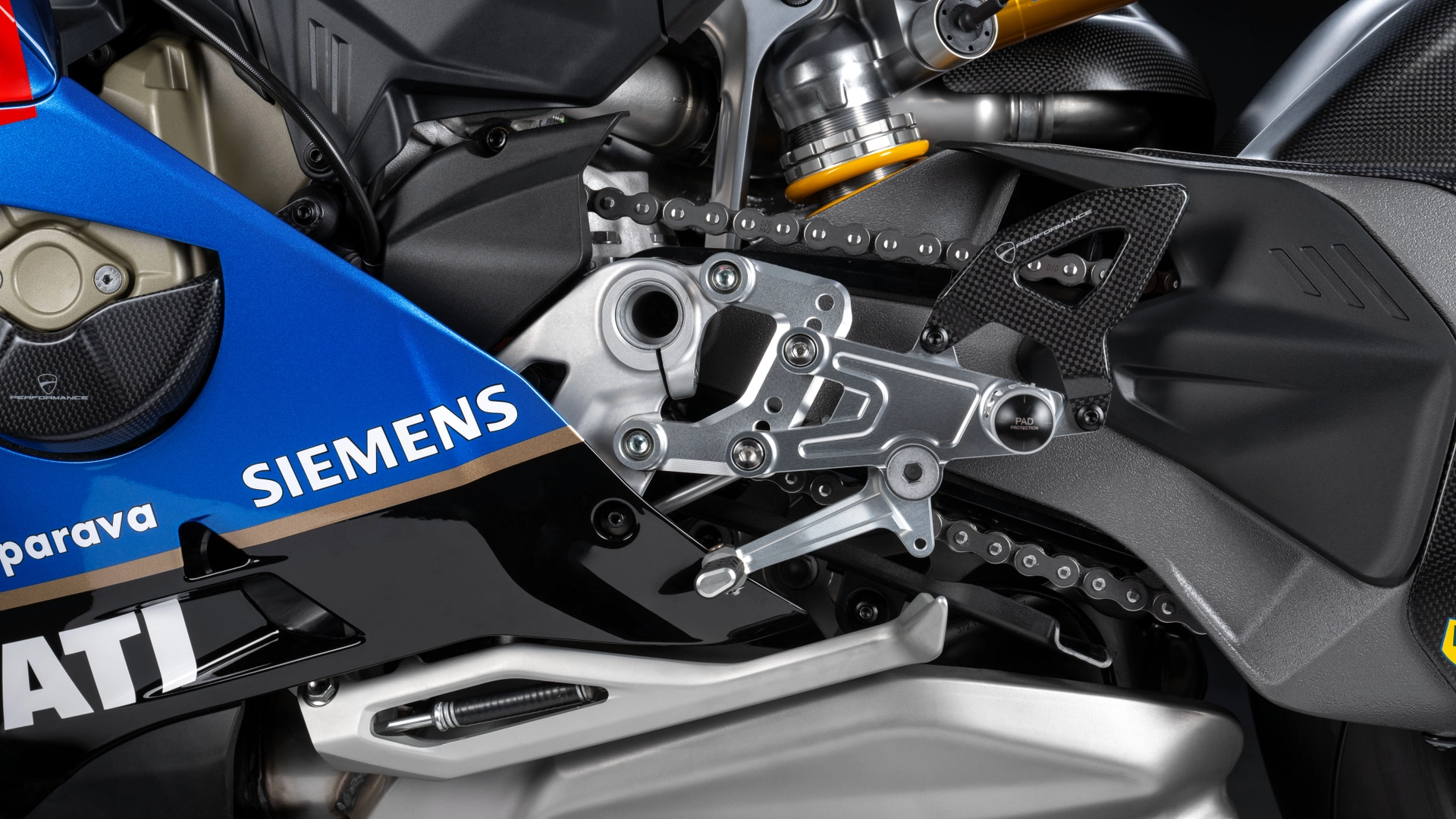 Le pinze GP4 Sport Production, ricavate dal pieno e omologate per la strada, includono alette di raffreddamento per una dissipazione ottimale del calore. Il sistema è completato da una pompa freno MCS 19.21 con regolazione remota, come nelle MotoGP. Questa edizione speciale monta anche una frizione a secco, pedane in alluminio regolabili e un modulo GPS per chi vuole portarla in pista.