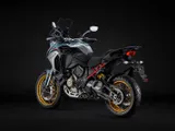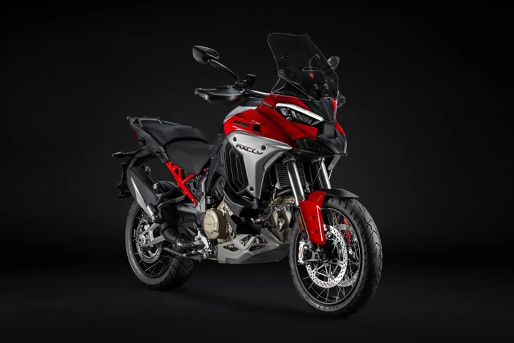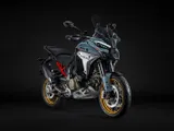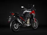 Non manca poi un quadro strumenti a colori da 6,5 pollici che è stato aggiornato nell’interfaccia utente. Il sistema continua ad offrire le funzionalità di navigazione cartografica grazie all’applicazione Ducati Connect, che supporta l’uso del telefono anche per rispondere a chiamate o ascoltare musica, utilizzando un casco dotato di sistema interfono. Rispetto a Multistrada V4, il parabrezza maggiorato di 40 mm in larghezza e 20 mm in altezza offre una maggior protezione. La posizione degli attacchi valige è stata definita per offrire ampio spazio alle gambe del passeggero, che gode anche di maggior supporto e senso di robustezza del top case grazie al supporto pressofuso. In aggiunta, per agevolare il carico e lo scarico delle valigie laterali e facilitare la manutenzione, il cavalletto centrale, ora evoluto nel design per rendere ancora più agevole il sollevamento della moto, è di serie.