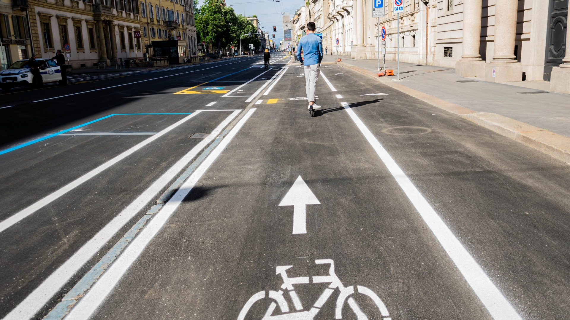 Con la corsia ciclabile (la bike lane), invece, si ricava uno spazio nella parte destra della corsia di marcia (o di quella più destra se ci sono diverse corsie) per la circolazione di bici, eBike e monopattini elettrici. Va notato che auto e moto potranno valicare la linea di demarcazione: non si tratta di una pista ciclabile e, in caso di necessità, i mezzi a motore potrebbero intersecare il loro tragitto con quelli della "mobilità dolce" in quanto è specificato l'uso promiscuo.