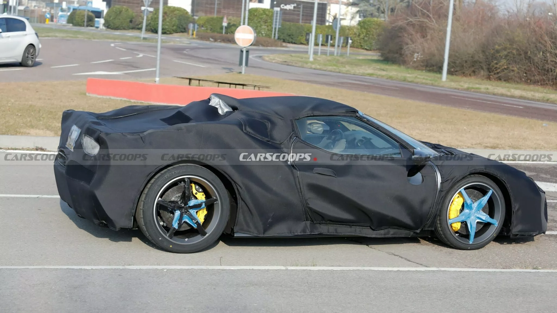 Nell'attesa di saperne di più, un muletto della sportiva è stato nuovamente intercettato durante una sessione di test su strada. La vettura protagonista delle foto spia appare ancora ovviamente camuffata con teli che coprono la carrozzeria. Comunque, si notano in ogni caso alcuni dettagli interessanti.