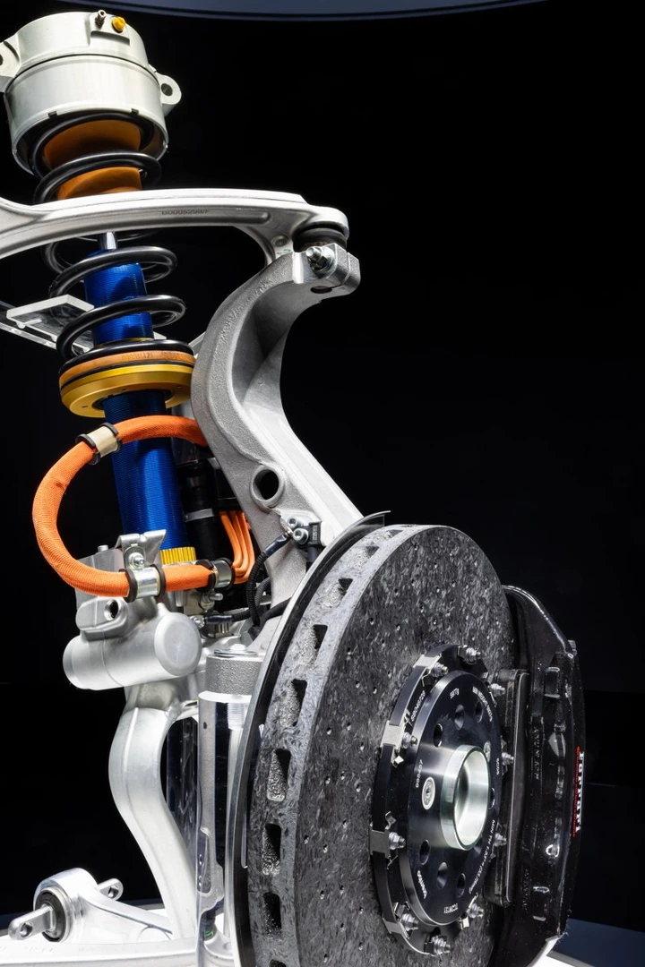 Dettaglio interessante, l’accumulatore è stato progettato per essere smontabile e riparabile in caso di necessità. Può essere smontato utilizzando un supporto ad hoc per sostituire moduli o parti elettroniche della batteria senza compromettere parti strutturali e finiture della vettura. Architettura a 880 V e si parla della possibilità di ricarica dalle colonnine in corrente continua fino a 350 kW.