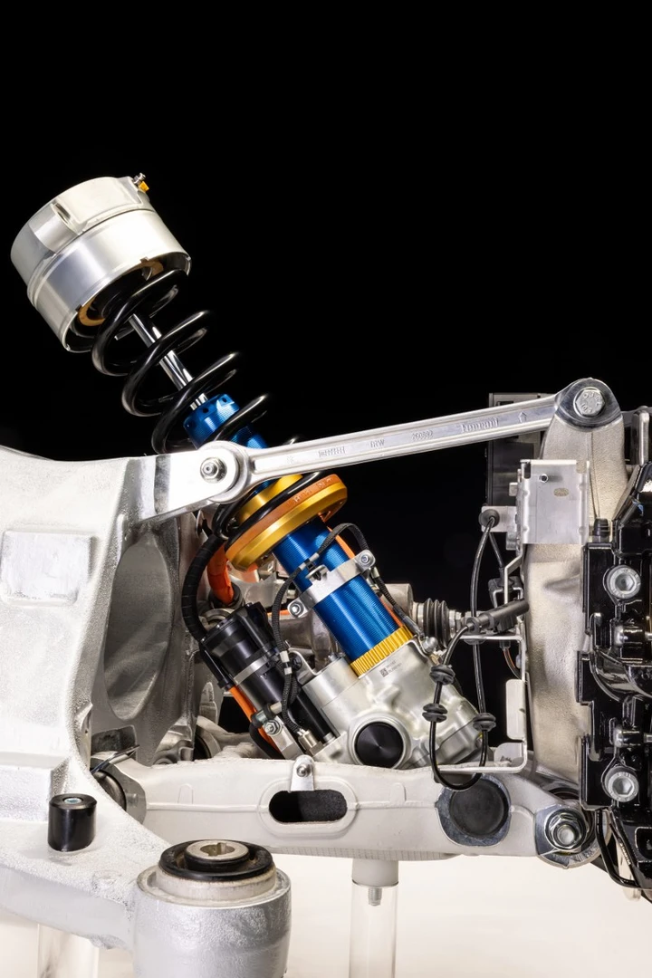 Al posteriore, troviamo per la prima volta un sottotelaio meccanico smorzato, progettato per ridurre rumore e vibrazioni percepite in abitacolo, che garantisce comunque rigidezza e dinamica di guida ai massimi livelli, cioè da quanto ci si aspetta da una vera Ferrari. La dotazione tecnica prevede pure la terza generazione della sospensione attiva a 48 V già introdotta su Purosangue e perfezionata su F80.