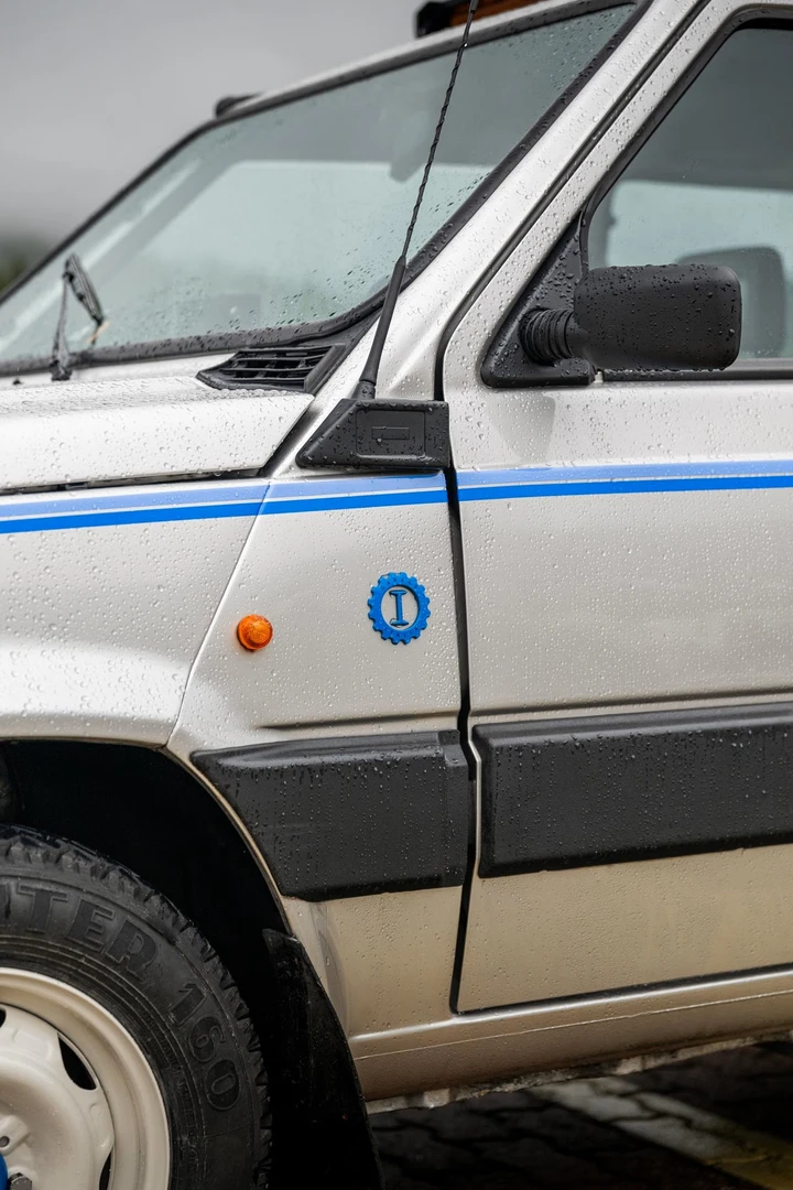 Questo esemplare speciale è stato voluto da un cliente svizzero. L’esemplare della FIAT Panda 4×4 è stato ovviamente prima revisionato e poi personalizzato secondo le richieste del cliente che voleva un modello che rendesse omaggio ai colori delle montagne. La carrozzeria presenta un colore argento metallizzato che richiama le rocce alpine, mentre due strisce in Serenity Blue e Classic Blue sono un riferimenti ai cieli limpidi delle vallate. La caratterizzazione estetica della Pandenim continua con cerchi color Trullo con coprimozzi duo tone che riprendono le sfumature blu della livrea, mentre il bull bar anteriore, le presa d’aria sul cofano e una serie di elementi dedicati rafforzano il carattere off-road di questa vettura.
